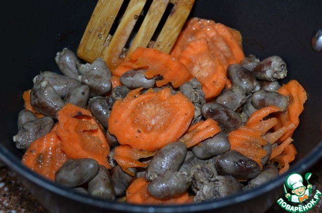 Рецепт «Обжаренное рагу с куриными сердечками»: