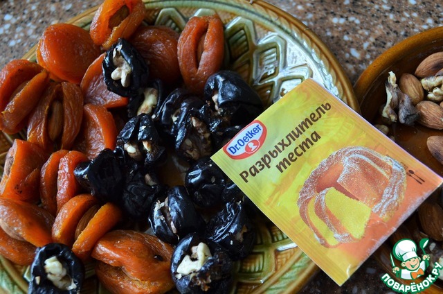 Начинить курагу миндалём, чернослив - кусочками грецкого ореха. -