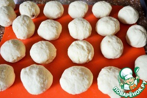 Отщипнуть кусочек теста, 40-45 г., расплющить в кружок,