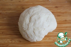 Добавить просеянную муку с разрыхлителем и замесить мягкое тесто.
