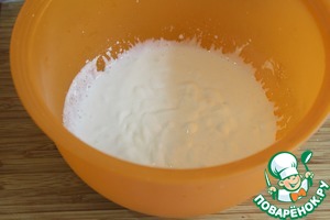 Добавить просеянную муку с разрыхлителем и замесить мягкое тесто.