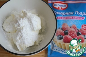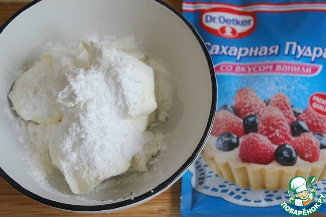 Маскарпоне смешать с сахарной пудрой по вкусу и крахмалом.