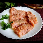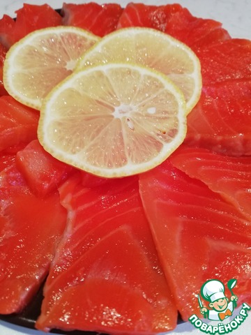 Время просаливания зависит от того, насколько тонко вы нарезали рыбу. Кусочки толщиной в 1 мм просолятся через час, а кусочки толщиной 5-7 мм просолятся через 5-8 часов.