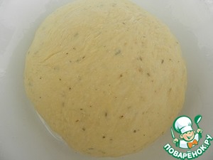 Поместить тесто в миску, смазанную растительным маслом, накрыть полотенцем и оставить в теплом месте на 40-60 минут до увеличения в объеме в 2 раза. -