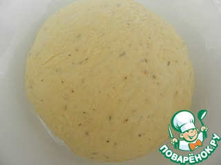 Подошедшее тесто обмять, разделить на 4 части (можно больше частей или меньше, как вам будет удобней работать с тестом).