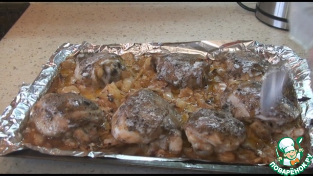 Рецепт «Куриные бедрышки на луковой подушке»: