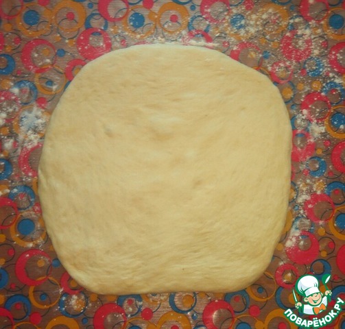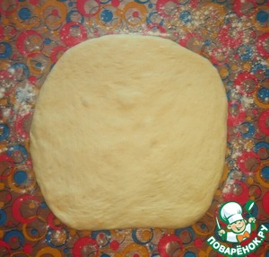 Припыляем стол мукой. Выкладываем тесто, растягиваем его в прямоугольник.