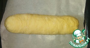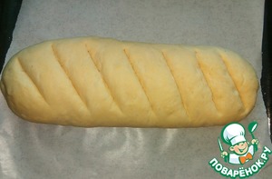 Перекладываем батон на застеленный пергаментом противень швом вниз. Накрываем полотенцем, оставляем подходить на 1 час.
