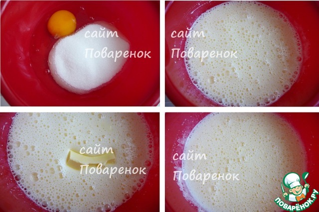 Готовим сдобу. В миску влить яйцо и белок, добавить соль, сахар,