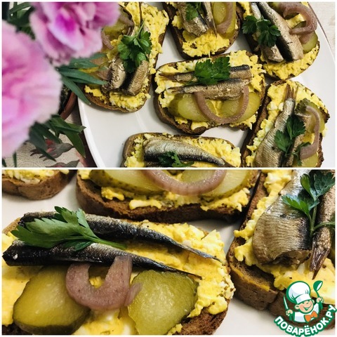 Ингредиенты для «Праздничные бутерброды со шпротами»: