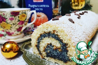 • Бисквитный рулет посыпаем сахарной пудрой и подаем к столу.