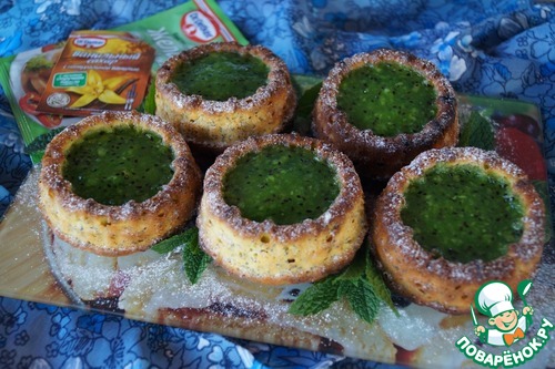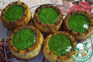 Корзиночки наполнить киви, и убрать в холодильник до полного охлаждения. Начинка из киви застывает как желе.