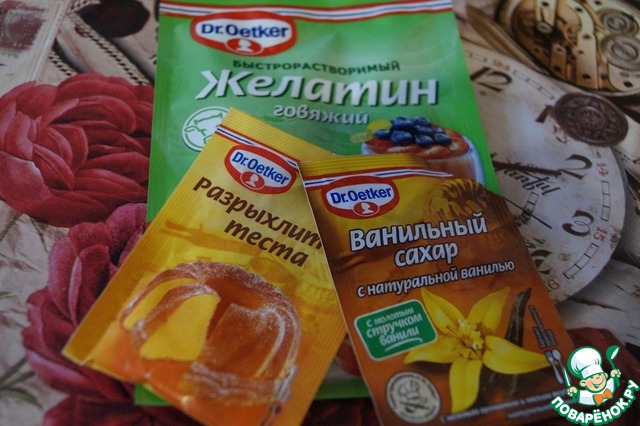 Приготовить корзиночки с киви нам помогут быстрорастворимый желатин, ванильный сахар и разрыхлитель теста от Dr. Oetker