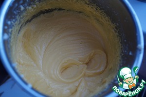 Мягкий маргарин взбить со 150 гр сахара до пышности, затем добавить ванильный сахар, щепотку соли и по одному вбивать желтки.