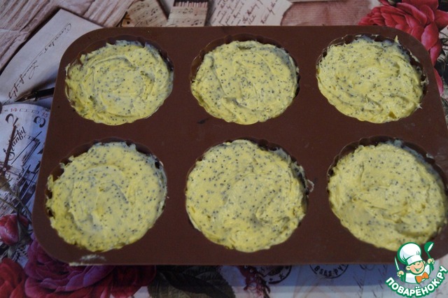 Разложить тесто по формочкам и выпекать в разогретом до 180 градусов духовом шкафу 20 минут. Готовность проверить шпажкой.