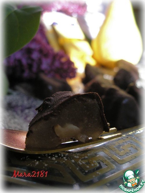 Карамелизированная груша с ароматом ванили и начинкой из миндаля, и всё это в шоколаде - трудно устоять от такого соблазна! Десерт в виде домашних конфет будет достойным завершением любого праздника. Угощайтесь в своё удовольствие!
