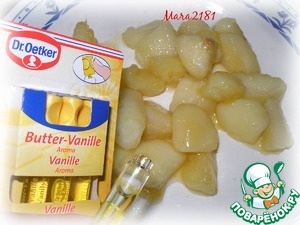Карамелизированной груши у меня получилось весом около 165 г. Теперь добавляю к груше 0,5 мл пищевого ароматизатора "Сливочная ваниль" ТМ "Dr.Oetker" и аккуратно перемешиваю.