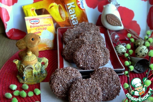 Приготовьте такое печенье перед чаепитием, оно займёт у Вас буквально 5-10 минут! Я лично поражена результатом, хотя попробовала машинально, на пробу. Одно условие: хранить в холодильнике. Перевела с американского сайта. Уменьшила какао, т. к. какао "д. Откер" очень насыщенное и его мало надо.