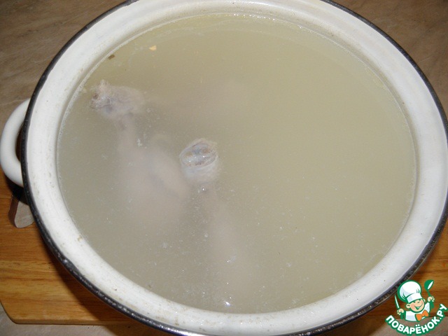 Сварить куриный бульон (я потом куриное мясо отделяю от костей и возвращаю его в суп)