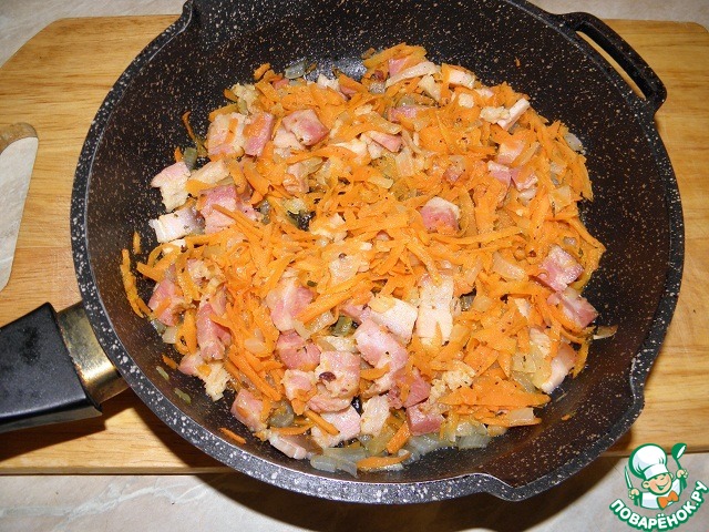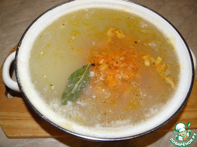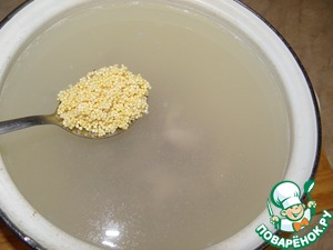 В кипящий бульон всыпать промытое пшено (я предварительно замачиваю его в воде, чтобы убрать горечь)