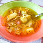 Суп лапша к обеду будет с вермишелью и пшеном! Кто картошку очень любит, мы ее в него натрем! Необычный, интересный, сытный, нежный, золотой! Он в меню всегда уместный! Вкусный, бархатный такой!