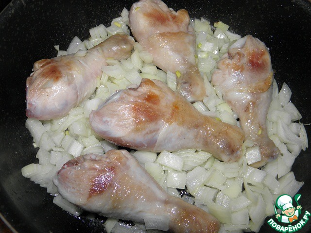 - Курица (любых частей курицы (у меня в этот раз голени)) — 1,2 кг