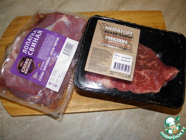 Конечно в оригинале говядина со свининой прокручиваются по отдельности, раскладываются по разным пакетам и отправляются еще в морозилку, чтобы в середине фарша была температура приблизительно 2% для максимально тонкого помола) (мы упростили этот вариант)