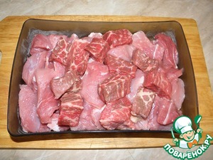 - Свинина (филе (хорошо лопатку) а там какое будет) полужирное) — 750 г