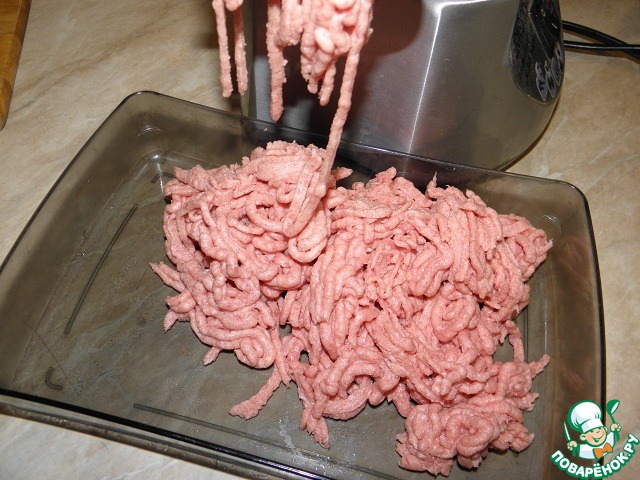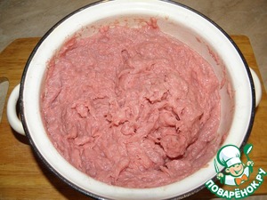 Затем в фарш добавляется холодное молоко, соль и сахар ( в некоторых рецептах молоко заменяют ледяной водой 200мл) но с молоком мне кажется нежнее)