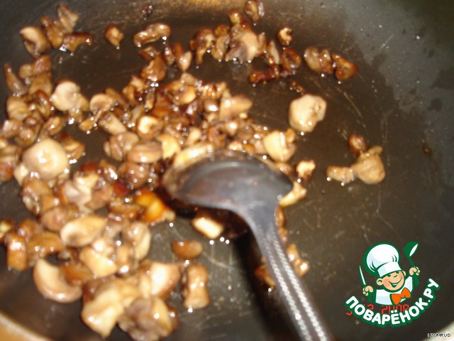 - Грибы (свежие шампиньоны, нарезать и обжарить) — 200 г