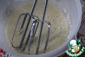 Взбить яйца с сахарной пудрой и размягченным маргарином.