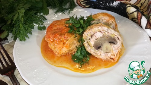 Листья пекинской капусты промыть. На каждый лист положить наши тефтели и завернуть.