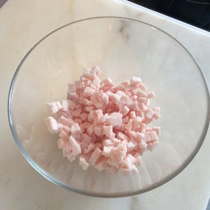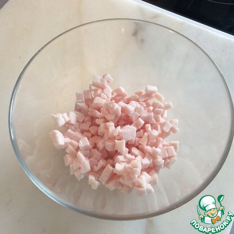 Шпик, подмороженный, нарезаем небольшими кубиками 0,5-07 мм и снова подмораживаем.