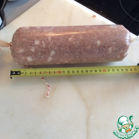 Набиваем колбасу плотно, можно и отбить: полиамидная оболочка очень крепкая.