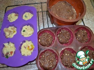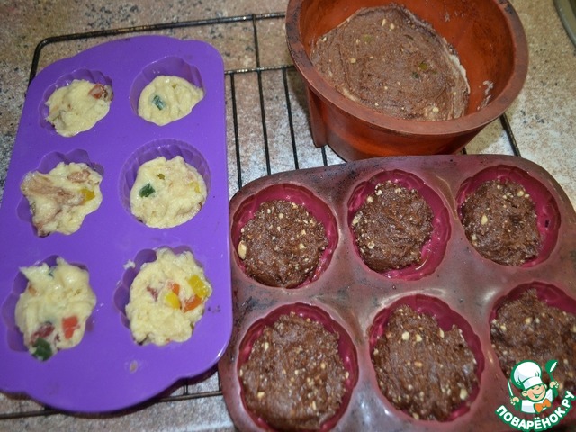 ложкой выкладываю сначала часть теста с какао, затем светлое тесто...