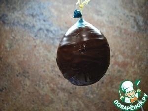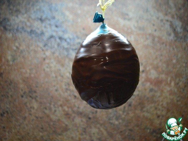 Изготавливаем под наш тайный сюрприз форму яйца с помощью шарика из топлёного шоколада