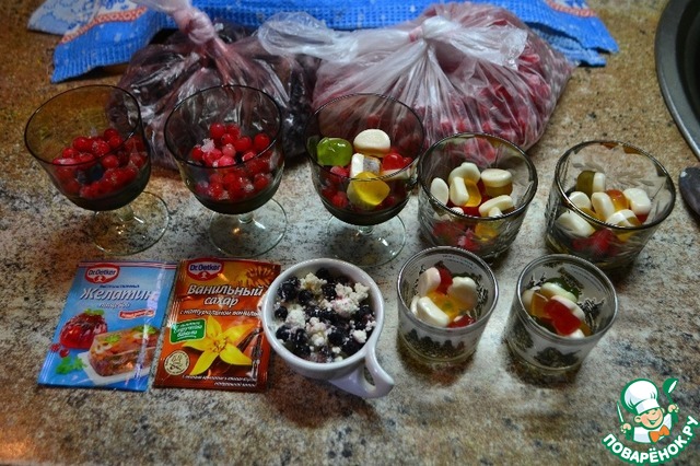 Разводим желатин продукции Dr. Oetker и заливаем ягоды, фигурки декоративные