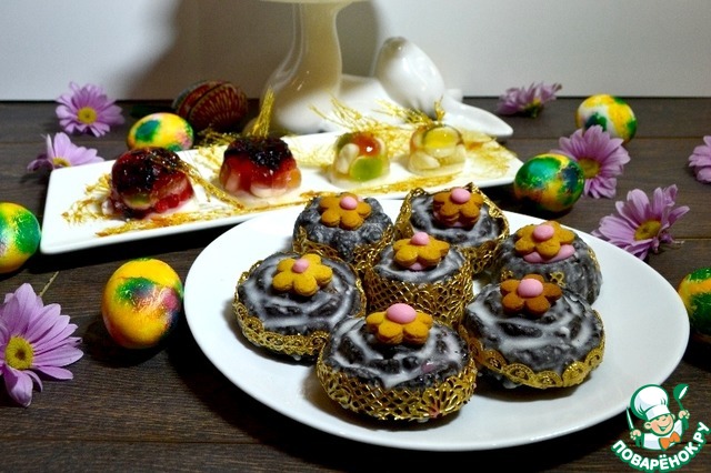 Маленькие куличики в форме цветочков декорируем розовой глазурью продукции Dr. Oetker