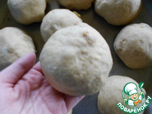 Тесто разделить на ровные части и сформировать небольшие круглые булочки.