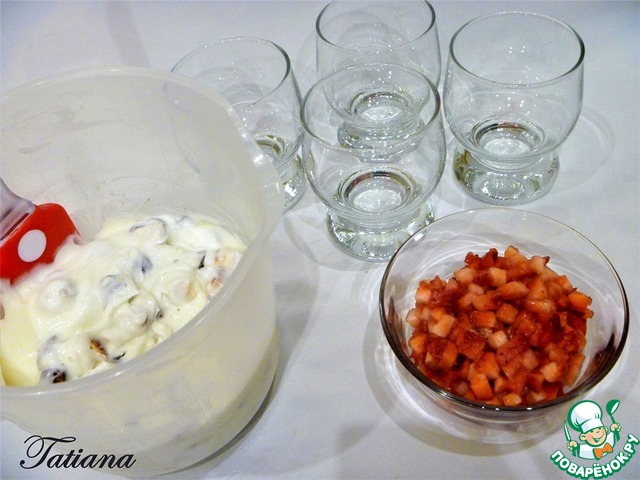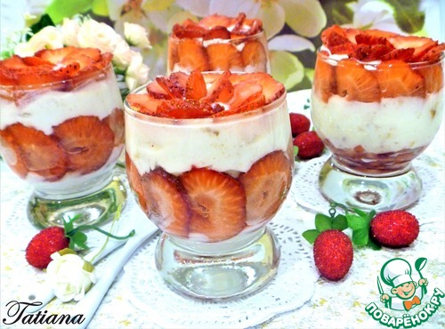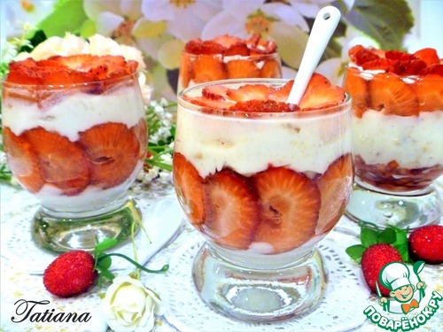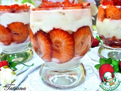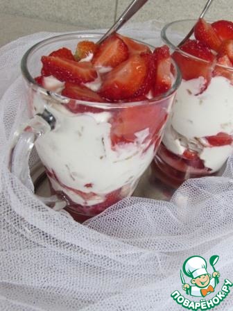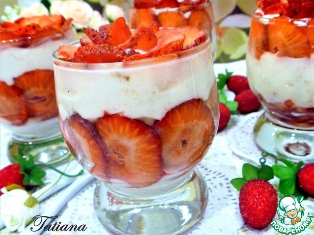 Рецепт «Сметанный десерт с клубникой и печеньем»:
