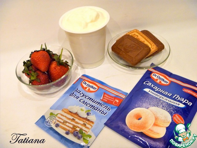 Ингредиенты для «Сметанный десерт с клубникой и печеньем»: