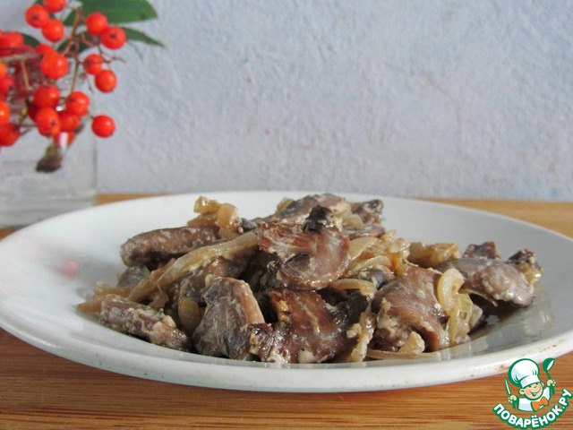 Жареные грибы с луком со сметаной готовы. Приятного аппетита!
