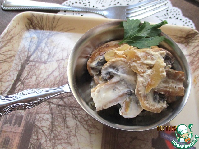 Ингредиенты для «Жареные шампиньоны со сметаной»:
