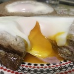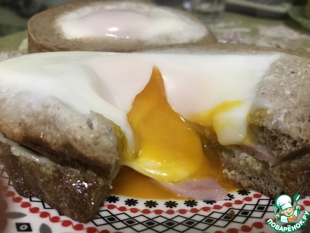 Выкладываем верхний слой хлеба на бутерброд. В отверстие перекладываем оставшиеся яичные желтки.