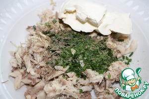 Скумбрию разобрать на волокна, добавить сливочный сыр, сок лимона, мелко нарезаный лук и петрушку.