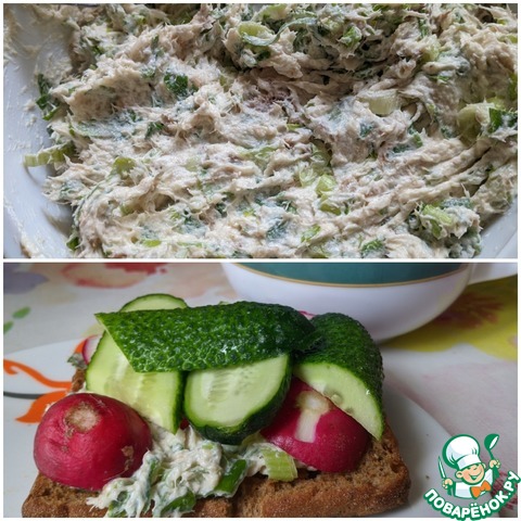 Очень вкусный и пикантный паштет из скумбрии (макрели) на тостовом хлебце с овощами.