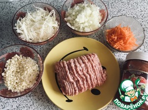 Нарезаем овощи, так, чтобы фарш и овощи были 1:1. Сыр трём.