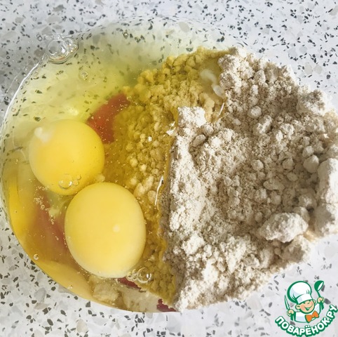 Смешиваем все ингредиенты для теста до однородной массы. Если вы хотите именно десерт для диеты, то рекомендую взять три белка, не используя желтков.