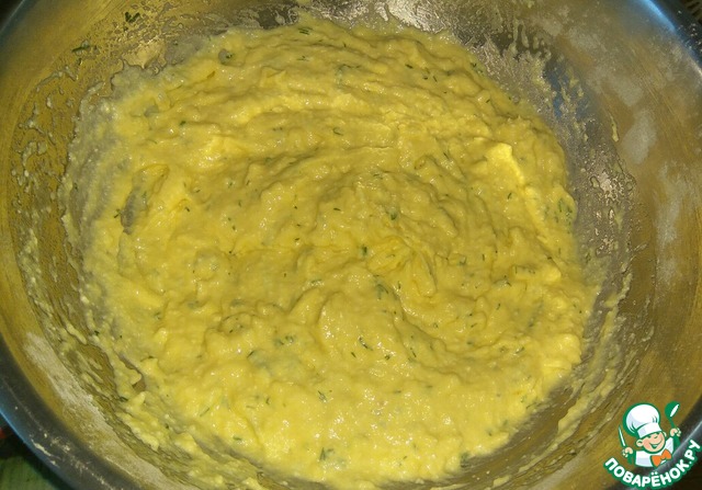 Жидкую смесь соединить с сухой, добавить укроп. Можно еще добавить измельченный чеснок. Перемешать.