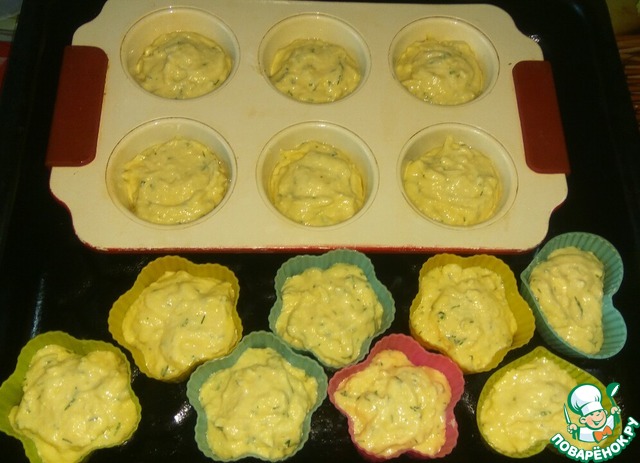 Вылить тесто в формочки, посыпать по желанию кунжутом. Выпекать в разогретой до 180 градусов духовке 25 минут до готовности.